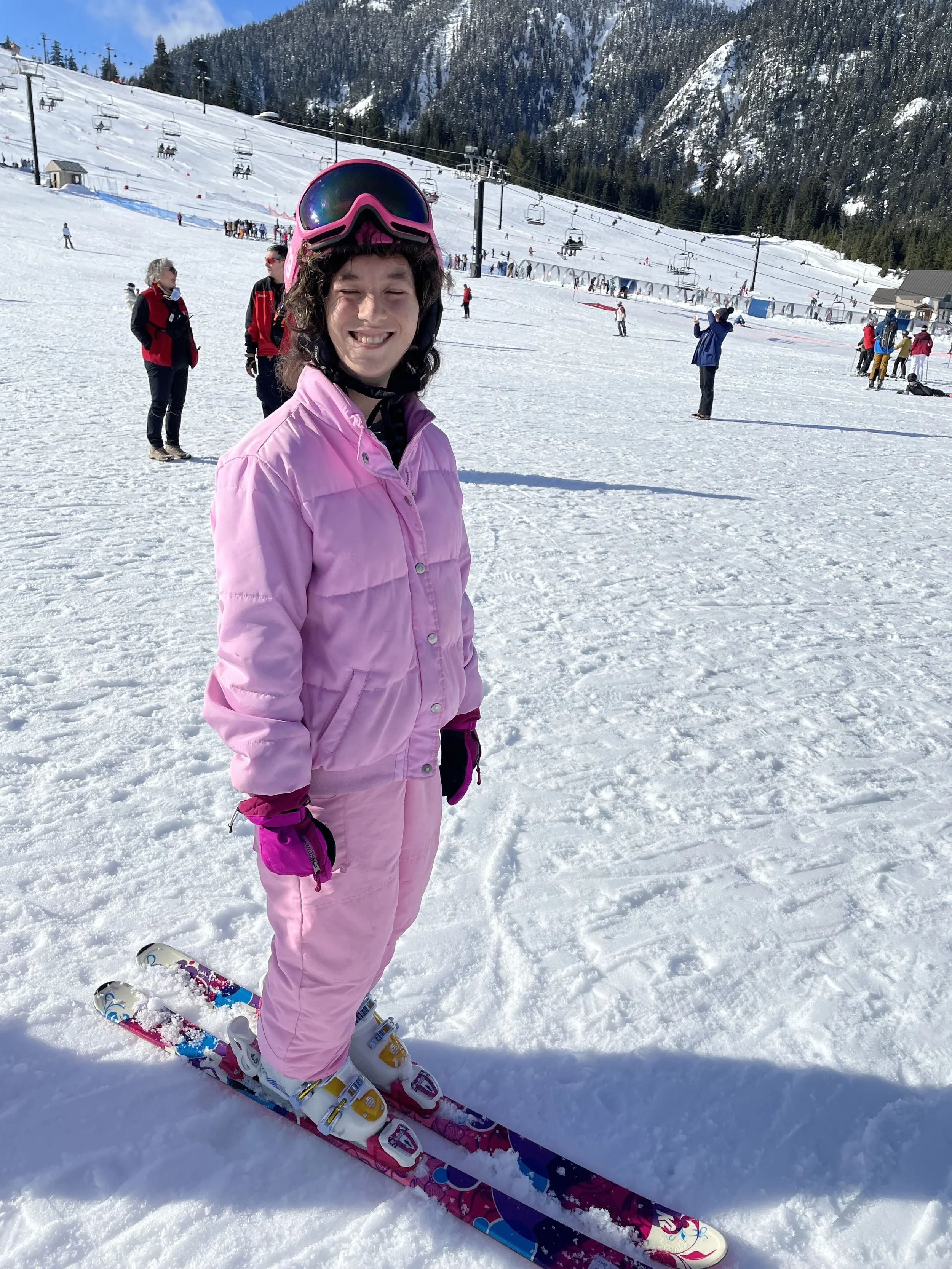 Also, I’ve discovered how weary I’d been with a FT job and a special-needs kid whose care falls completely on my shoulders. And at the end of January, Veeka and I both came down with Covid; my first time, her second. She bounced back; I took weeks to get over it. So, February was a lost month except for Veeka managing to get through a special needs course in skiing, after which she was able to ride a ski chair for the first time! Then in late March, I came down with shingles – aargh – which took a good six weeks to depart.