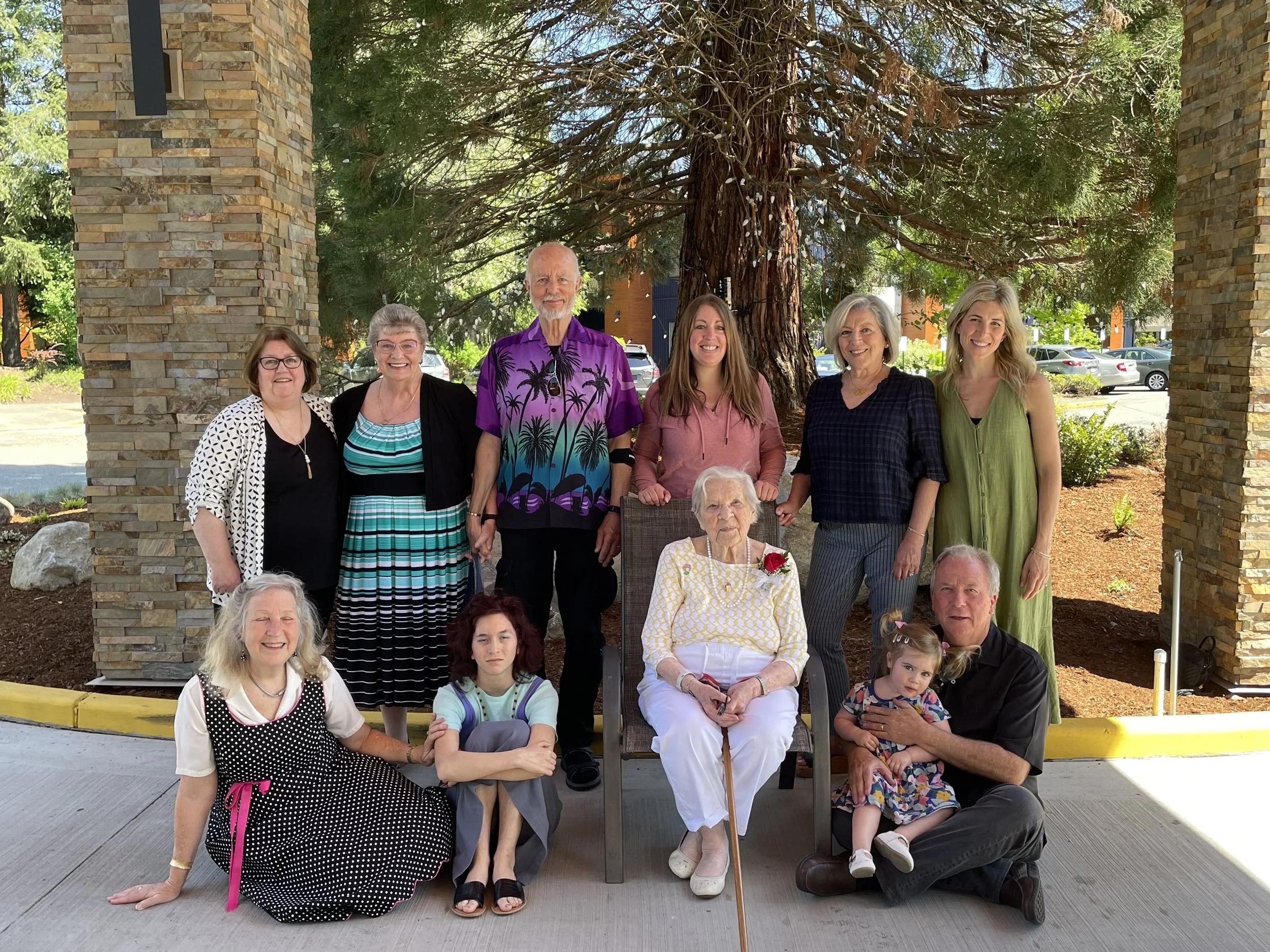 Phyllis Duin turns 95, surrounded by her children, grandchildren, various spouses and one great-grandchild.